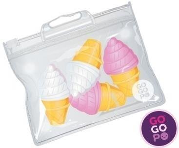 W skład zestawu wchodzą 4 sztuki  gumek w kształcie włoskich lodów w następujących kolorach:- turkus- czerwony- zielony- różowyWymiary pojedynczych gumek: wysokość - 4 cm. przeczytaj całość