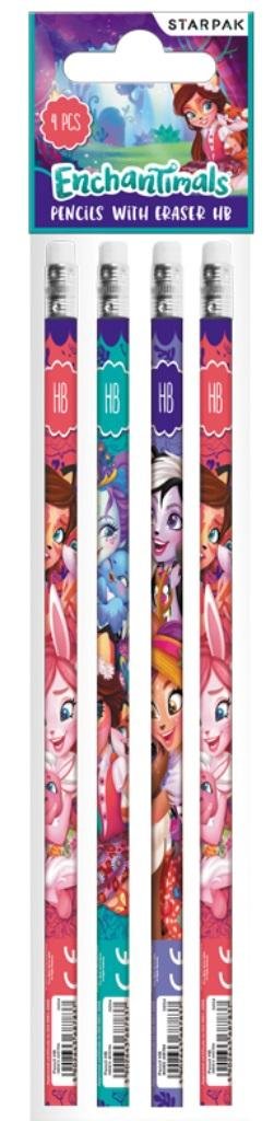 Zestaw 4 ołówków z gumką z kolekcji Starpak z licencją Enchantimals. Każdy ołówek zdobiony kolorową grafiką z ulubionymi bohaterami. Wykonany z trwałego drewna, zapewnia komfort rysowania i pisania. Ołówek nie łamie się podczas strugania, a gumka nie brudzi. Zapoznaj się również z innymi produktami Starpak z serii Enchantimals! Produkt przeznaczony dla dzieci w wieku: 3+. Pakowany w folię z zawieszką.