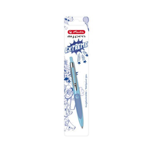 plastowy korpus z ergonomicznym gumowym uchwytem, metalowy klips, niebieski wkład atramentowy, długi czas pisania, na blisterze przeczytaj całość