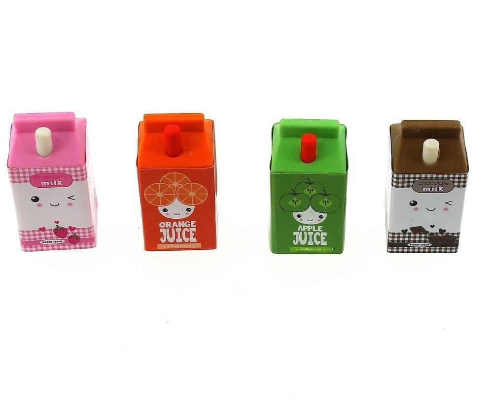 Gumki do mazania w kształcie kartoników mleka i soku. przeczytaj całość