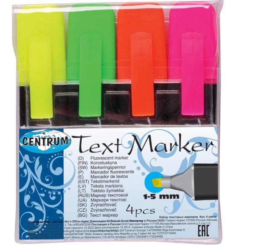 Zestaw 4 neonowych zakreślaczy (żółty,zielony,pomarańczowy, różowy) ze ściętą końcówką. przeczytaj całość