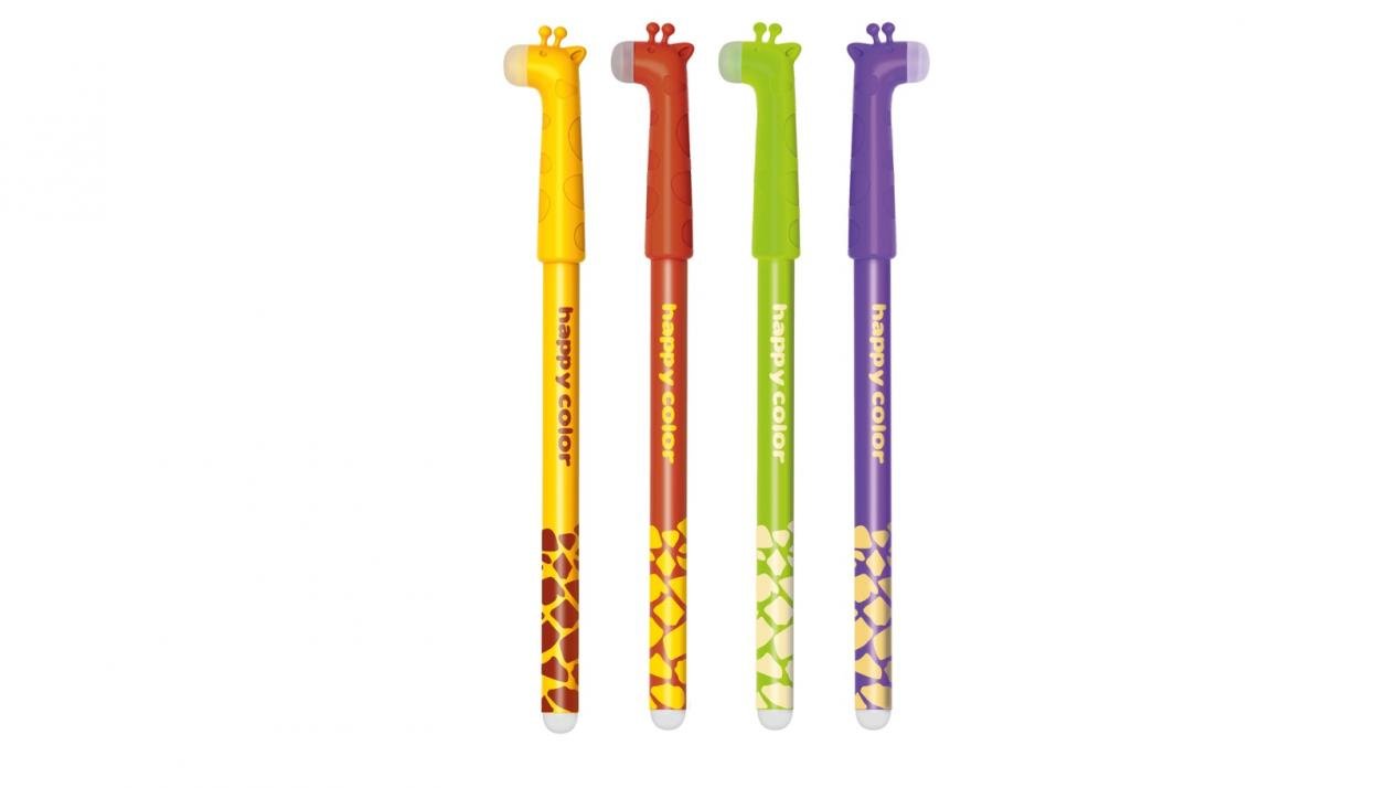 Długopis usuwalny Żyrafy, 0.5mm, niebieski, kolorowa obudowa, 4 sztuki na blistrze, Happy Color. przeczytaj całość