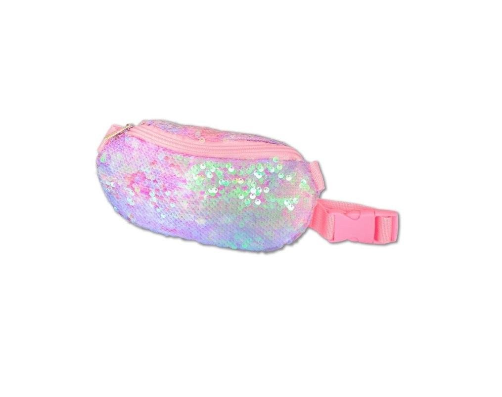 Stylowa saszetka "nerka" z holograficznymi cekinami, to świetny dodatek dla każdej małej fashion girl. Biodrówka pozwala schować małe potrzebne rzeczy jak klucze, portfel, aby nie zgubić ich na placu zabaw. Wyposażona jest w łatwo regulowany pasek zapinany na klamrę. Możesz ją nosić nosić na dwa sposoby: na biodrach lub modnie przewieszoną na ukos przez ramię. Saszetka zamykana jest na zamek błyskawiczny.