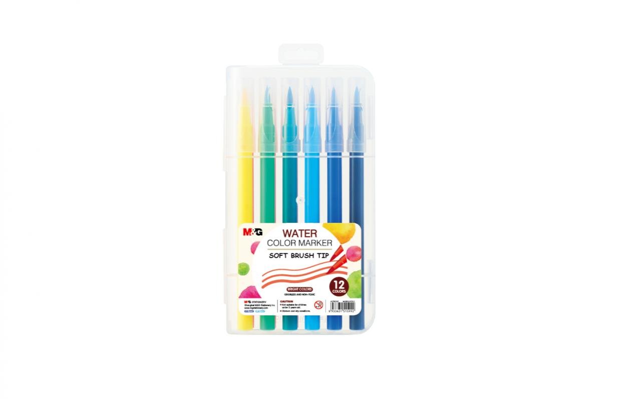 Flamastry pędzelkowe 12 kolorów M&GPisak artystyczny z miękką końcówkązapewniającą efekt malowania pędzelkiem.Tusz na bazie wody, łatwo zmywalne.Zatyczka wentylowana, ewentualne używanie przez dzieciWyłącznie pod nadzorem dorosłychZestaw 12 kolorów przeczytaj całość