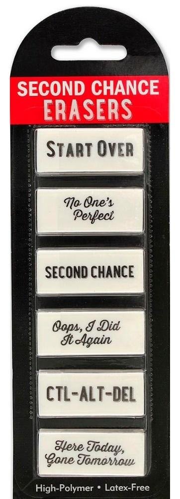 Zestaw 6 gumek do zmazywania marki Peter Pauper Press wykonanych z wysokiej jakości polimerów, bez użycia lateksu - dzieki temu pozostają miękkie. Usuwają niechciane błędy bez smug i drobinek. Każda gumka posiada zabawny nadruk. Wymiar gumki to 4,44x1,74x1,11 cm. Wymiar całego opakowania... przeczytaj całość