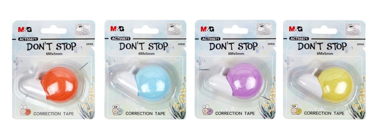Korektor w taśmie Ślimak - 5m x 5mm. Zapewnia suchą powierzchnię.Można pisać natychmiast po użyciu. Taśma odporna na zerwanie. Mix kolorów, kolor wysyłany losowo! przeczytaj całość