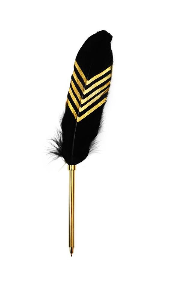 Długopis z ozdobnym piórem w kolorach złotym i czarnym. przeczytaj całość