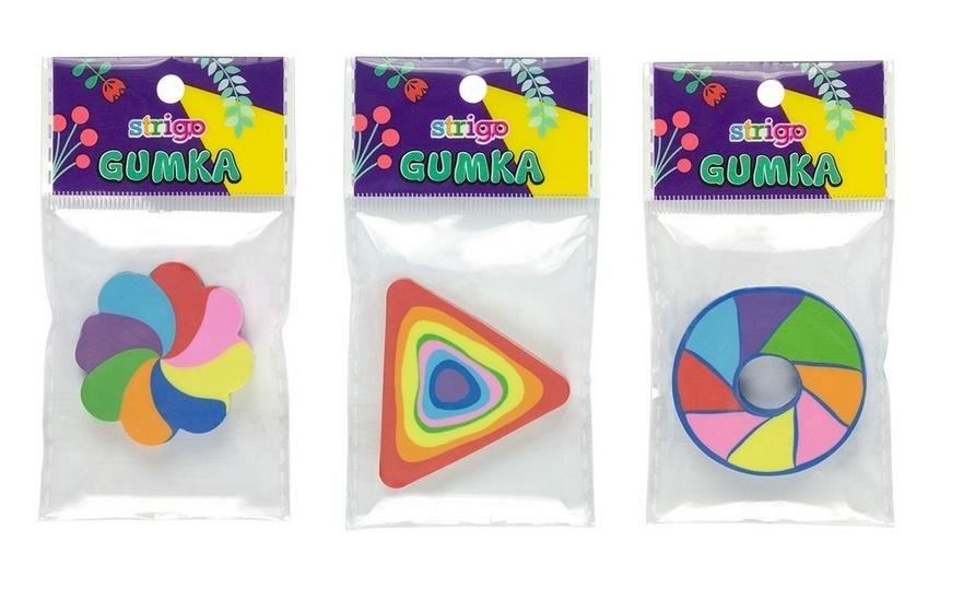 Miękka gumka do ścierania ołówków grafitowych.Nie pozostawia śladów podczas użytkowania. Występuje w jaskrawych kolorach i bardzo ciekawych wzorach, co sprawia, że mimo niewielkich rozmiarów, łatwo ją znaleźć w każdym piórniku.Uwaga! Mix wzorów. Towar wysyłany losowo. przeczytaj całość