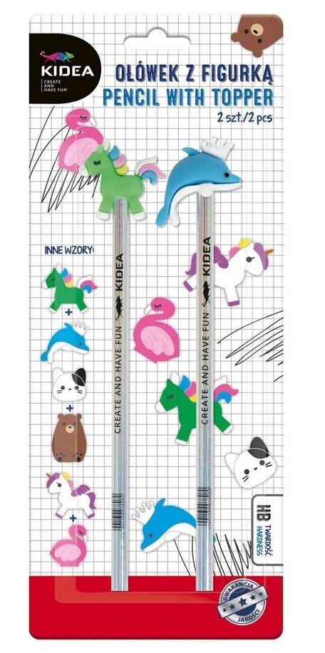 Drewniane ołówki w kolorze srebrnym z rysikiem HB zakończone gumowymi figurkami. Do wyboru aż 6 uroczych zwierzaczków: flaming, jednorożec, kotek, konik, miś lub delfin. Ołówki są doskonałe do nauki pisania. W zestawie 2 szt. Produkt sprzedawany na blistrze wymiary blistar 25,5 x 10,5 x 2 cm przeczytaj całość