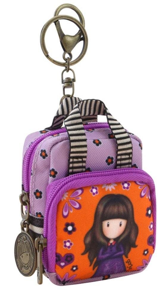 Portmonetka, Plecak - Gorjuss Fiesta - Cobwebs. Przechowuj drobne w tej nowoczesnej portmonetce w kształcie plecaczka. Za pomocą dodatkowego karabińczyka można ją przytroczyć do większej torby. Ładna i praktyczna w odcieniach królewskiej purpury i nasyconego pomarańczu. Ozdobiona breloczkiem z wizerunkiem dziewczynki Gorjuss. Zapinana na suwak. Dodatkowa kieszonka z przodu. Czyścić wilgotną ściereczką.