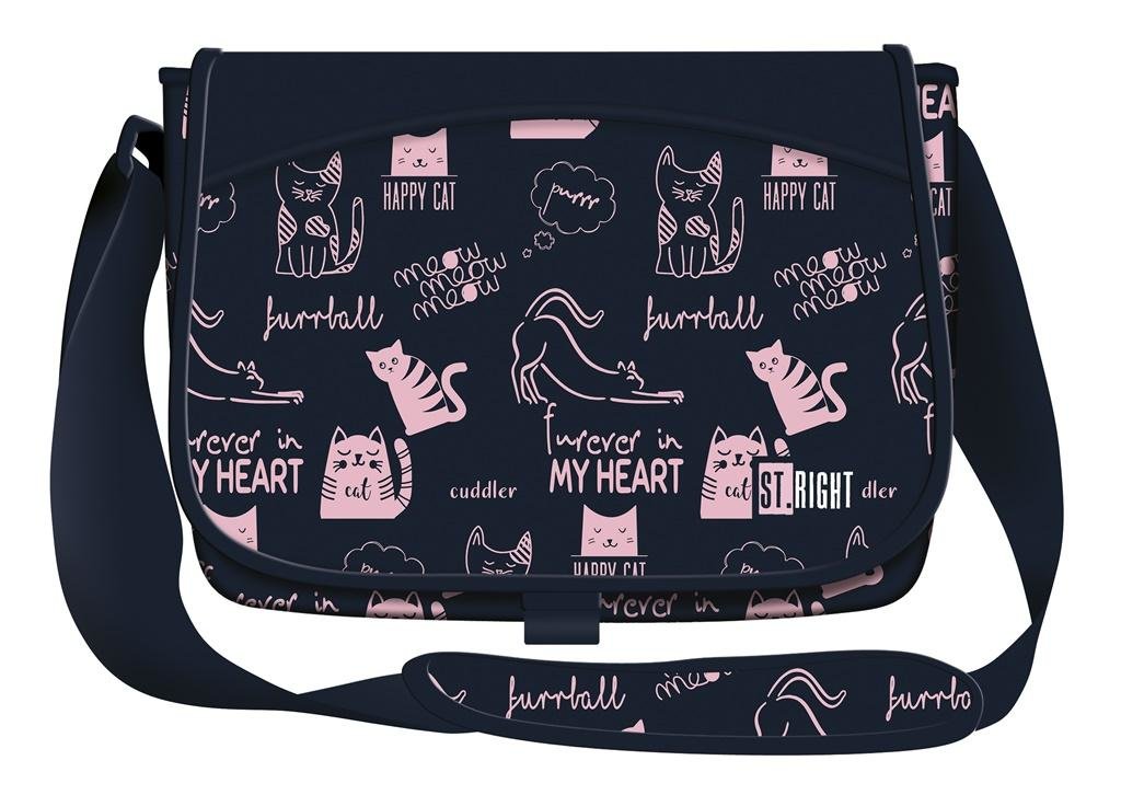 Pojemna i funkcjonalna torba do szkoły mieszcząca format A4. Torba charakteryzuje się bardzo starannym wykonaniem oraz ciekawym wzorem w różowe kotki na ciemnym tle. Materiał z którego uszyto torbę jest wodoodporny i wytrzymały. Klapa torby zamykana na bardzo wygodny, duży zatrzask. Pod klapą...