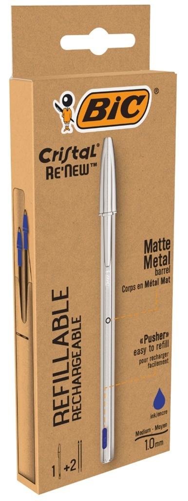 Długopis kulkowy BIC Cristal Original to przyrząd piśmienniczy o jakości premium. Zrównoważony design, niezawodna jakość i ponadczasowy wygląd! Wkład można łatwo wymienić dzięki przyciskowi po boku Matowy, metalowy korpus, który można grawerować laserowo Nasadka wykonana w 96% z plastiku pochodzącego z recyklingu Sześciokątny kształt charakterystyczny dla oryginalnych długopisów Cristal Średnica kulki: 1,0 mm Szerokość linii: 0,32 mm W opakowaniu znajdują się 2 niebieskie wkłady do długopisu kulkowego