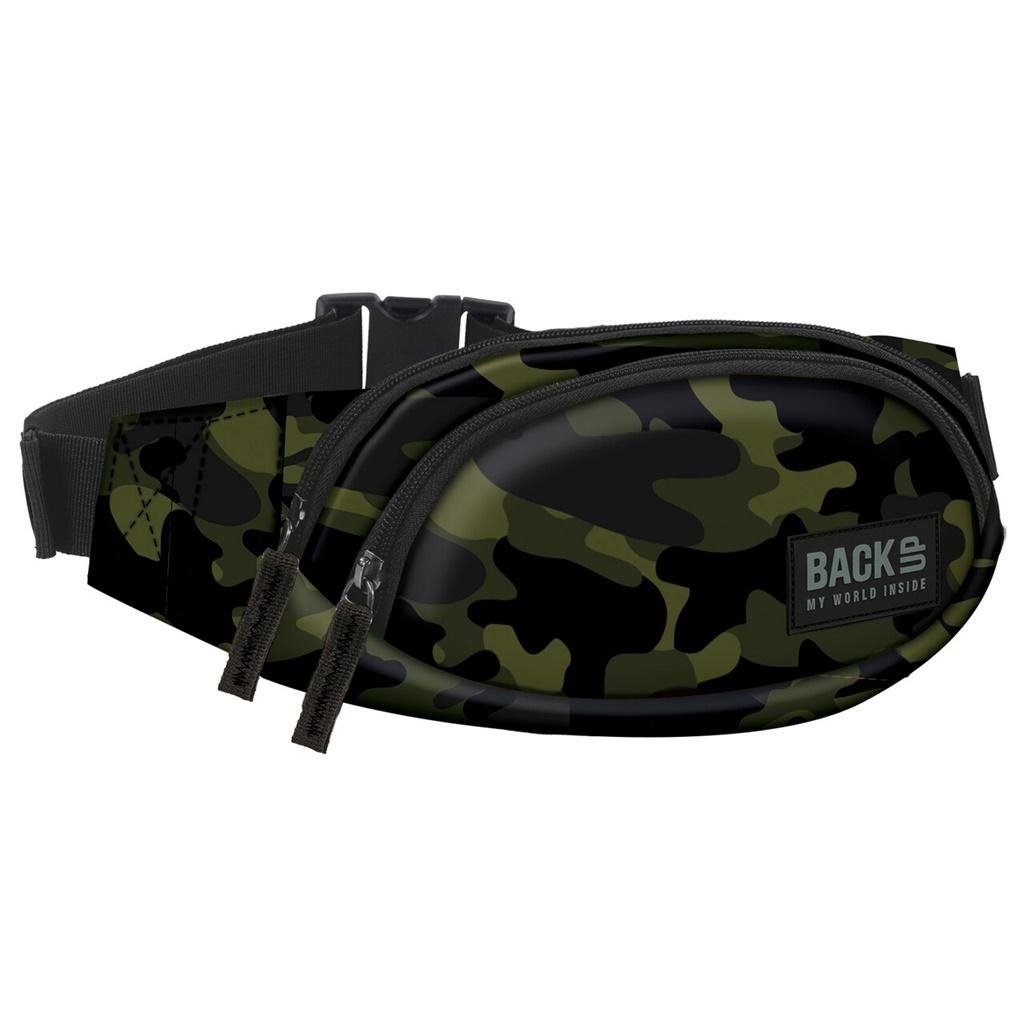 Torba na biodra w odcieniach khaki. Ponadczasowy wzór moro jest tak uniwersalny jak czerń, pojawia się w zarówno w stylizacjach codziennych, jak również na eleganckich galach! Militarny motyw cieszy się sporą popularnością już od kilku sezonów! Postaw na kultowy print, pełen charakteru.- Z przodu...