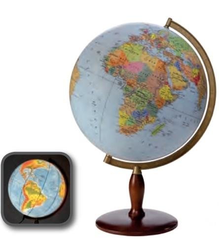 Globus 420 mm podświetlany, mapa polityczno-fizyczna 2w1, drewniana niska stopka, cięciwa aluminiowa. przeczytaj całość