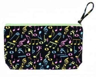 Piórnik, który również może służyć za kosmetyczkę o wymiarach 24 x 14 x 3.5 cm, elegancki z nadrukiem kolorowych nut po obu stronach. przeczytaj całość