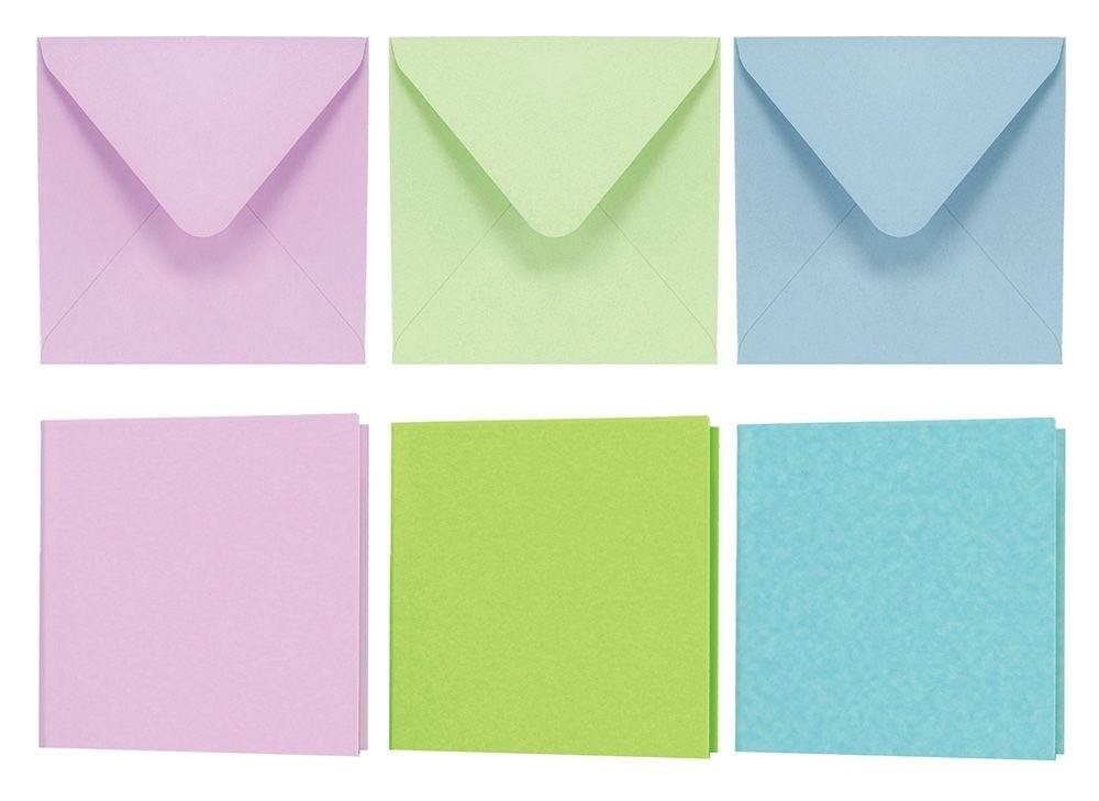 Baza do kartek 14x14cm kolorowe 5 kopert + 5 kart składanych w Ukolory: bladozielony, wrzosowy, niebieski przeczytaj całość