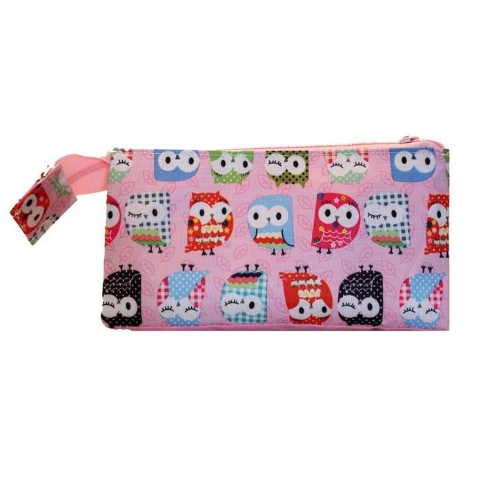 Piórnik saszetka z motywem przedstawiającym kolorowe sowy. Zapinana na zamek z metalową zawieszką. Saszetka idealnie pomieści długopisy, kredki oraz flamastry a także wiele innych gadżetów. Posiada trzy przegrody ułatwiające segregację. Pojemna, a zarazem zajmująca mało miejsca w plecaku, bardzo lekka i wytrzymała. Przydatna w domu oraz w szkole.