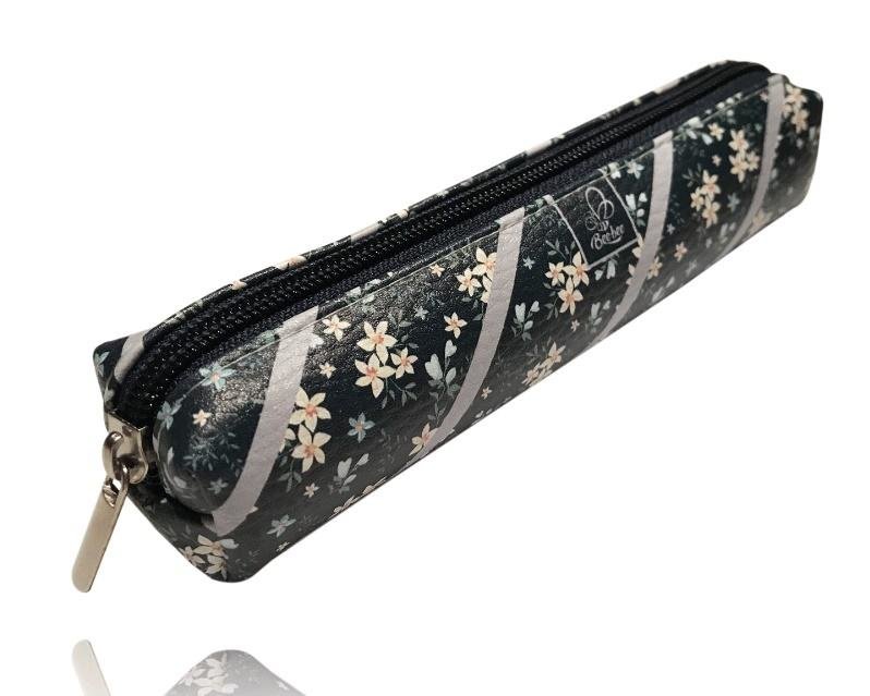 Piórnik mini prostokąt Kwiatki granatowe PPM-18