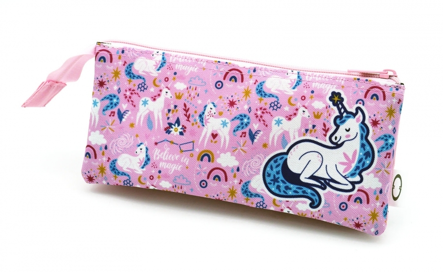 Praktyczna saszetka z popularnym motywem jednorożca, odpowiednia nie tylko na przybory szkolne i biurowe, ale także na drobne przedmioty. Zapięcie na zamek. Wymiary: 22 x 10 cm. przeczytaj całość