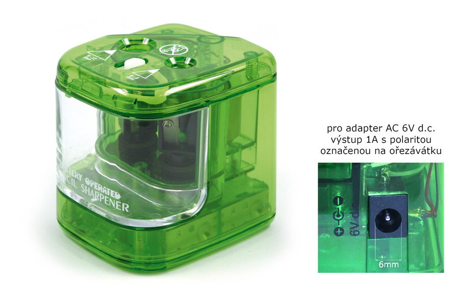 Elektrické ořezávátko s pohonem na baterie pro běžné tenké i JUMBO tužky (pastelky) - průměr otvorů 8mm a 13mm. Lze napájet i adaptérem (není součástí balení). przeczytaj całość