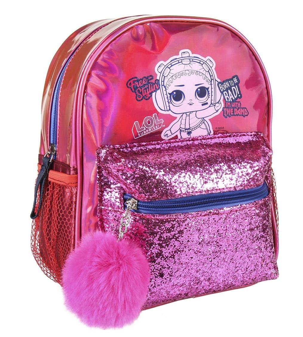 Rozměry: 26 x 21 x 10 cm.Materiál: 50% polyester, 30% pvc, 20% pu.Jedna hlavní a jedna přední kapsa + 2 postranní perforované.Barva: malinová.Výrobce: Cerda. przeczytaj całość