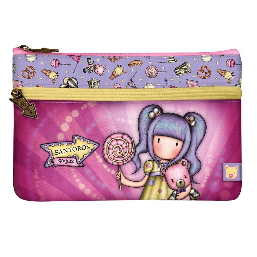 Płaski piórnik z kieszonką - Gorjuss - First PrizeFantastyczna seria First Prize ozdobiona jest grafiką dziewczynki Gorjuss ze słodkim misiem, na tle w kolorze liliowym, wzbogacona akcesoriami z lunaparku: balonami, popcornem, lizakami, cukrową watą.Stylowa saszetka, która pomieści wszystkie...