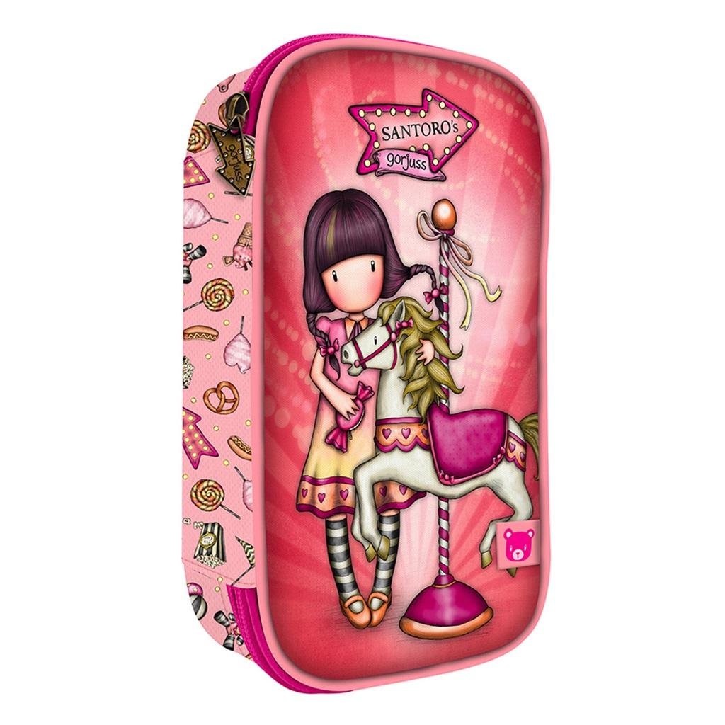 Rozkładany, 4-Częściowy Piórnik z Wyposażeniem - Gorjuss - CarouselFantastyczna seria Carousel ozdobiona jest dziewczynką Gorjuss z uroczym konikiem utrzymana w słodkich różowych kolorach. Na odwrocie fajerwerki, kolorowe girlandy, cukrowa wata - wszystko co znajdziemy w wesołym lunaparku.Piękny...