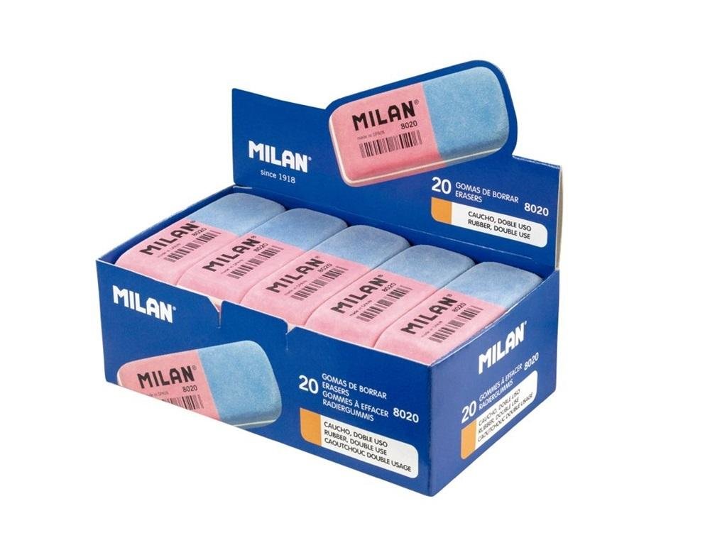 Gumka do ołówka i atramentu MILAN, trójwarstwowa, naturalny kauczuk. Pudełko 20 sztuk. przeczytaj całość