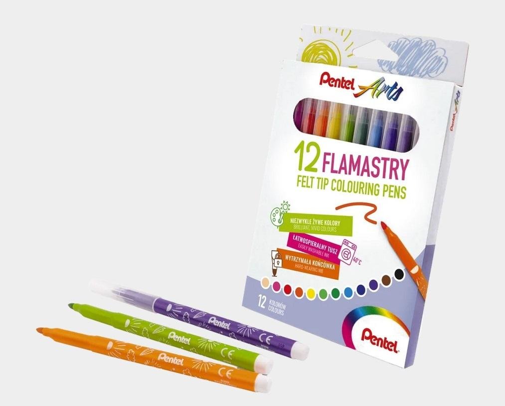 Zestaw flamastrów spieralnych 12 kolorów PENTEL:Kolorowe flamastry z końcówką o średnicy 3,9 mm.Żywe i wyraźne kolory.Łatwo spieralny tusz.Opakowanie 12 kolorów. przeczytaj całość