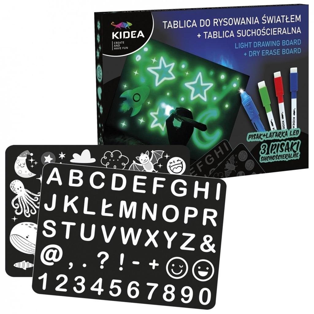 Tablica do rysowania światłem oraz tablica suchościeralna (z drugiej strony) idealnie sprawdzi się podczas nauki rysowania oraz pisania.Dołączone do zestawu 3 pisaki suchościeralne o kolorze - zielonym, niebieskim, pomarańczowy i czerwonym umożliwiają tworzenie efektownych obrazków na tablicy...