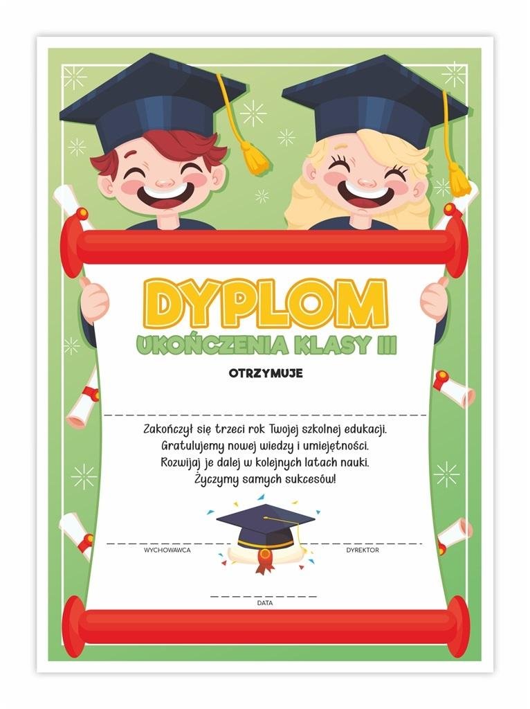 Dyplom A4 ukończenia klasy trzeciej-Uśmiech 20szt
