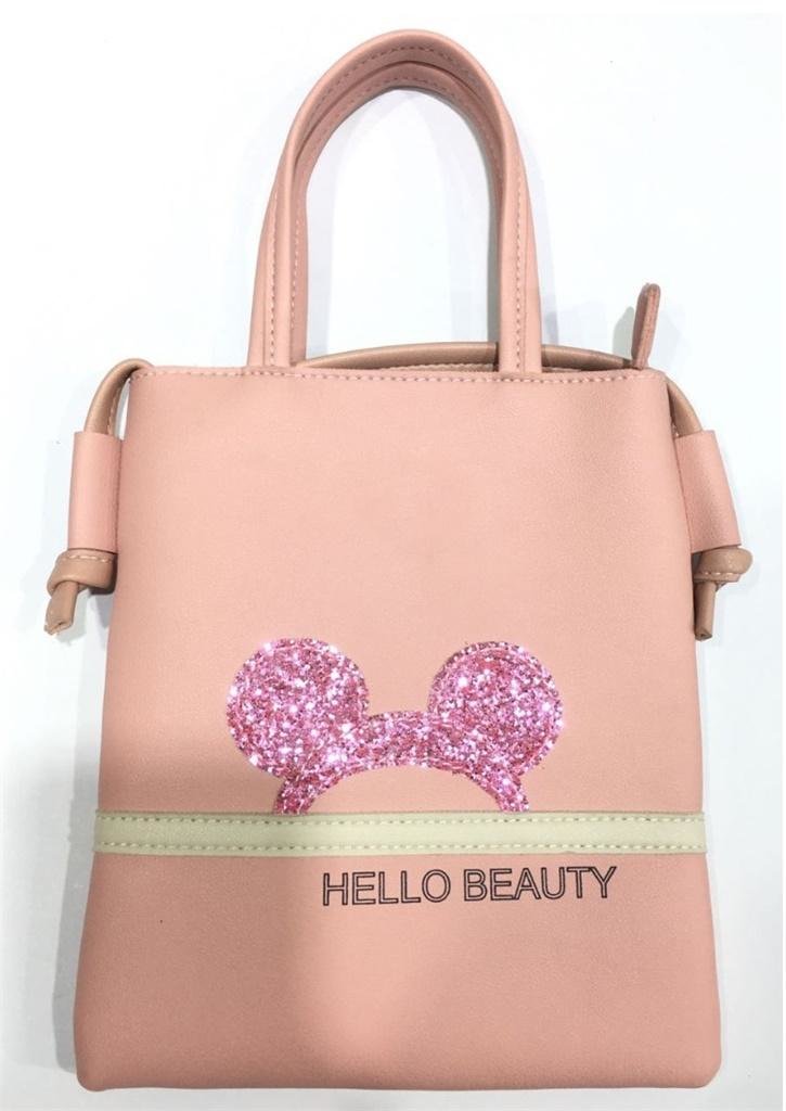 Mała, różowa torebka z kolekcji Bourgeois. Ozdobiona jest cekinowym wzorem uszu Myszki Miki. Poniżej napis ,,Hello Beauty". Torebka jest zapinana na zamek. Można ją nosić zarówno w ręku, jak i na ramieniu (posiada długi regulowany pasek). Uwielbiana przez dziewczynki. przeczytaj całość