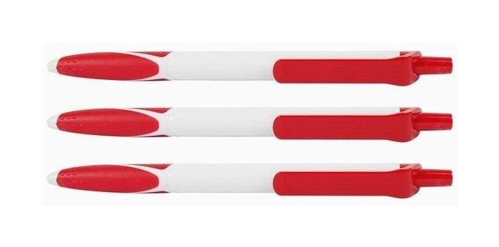 Plastikowy długopis, automatyczny, ergonomiczna obudowa z uchwytem antypoślizgowym, technologia double injection guma+plastik, wymienny wkład F-411, niebieski kolor tuszu, grubość linii 0,7 mm, 50 sztuk w paczce. przeczytaj całość