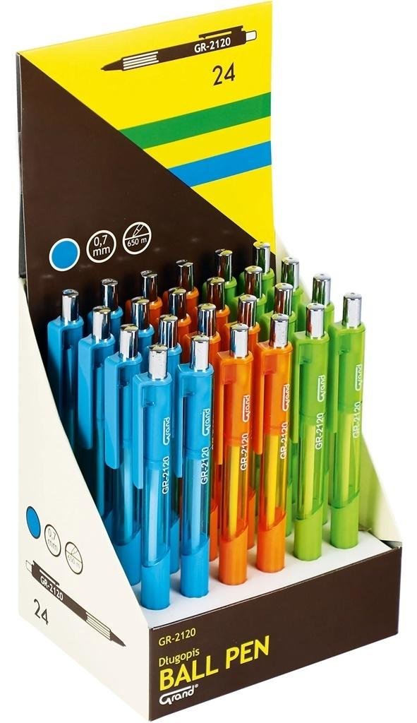 Opakowanie zbiorcze 24 sztuki. Mix wzorówautomatyczny z wymiennym wkłademergonomiczna obudowa z elementami antypoślizgowymidługość pisania: 650 mgrubość linii 0,7 mmniebieski kolor tuszu przeczytaj całość