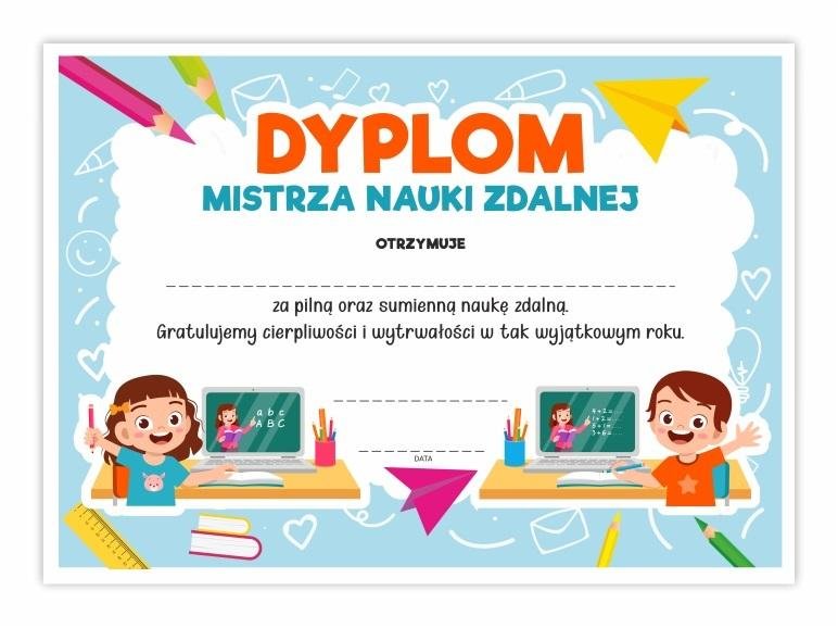 Dyplom mistrza nauki zdalnej idealnie sprawdzi się jako pamiątka oraz nagroda za ten wyjątkowy rok szkolny odbyty online!Upominek ten pokaże dziecku, że jego praca oraz wszelkie starania, podczas ciężkiej pracy zdalnej zostały docenione.Kolorowe obrazki oraz szkolny motyw na dyplomie dodają mu...