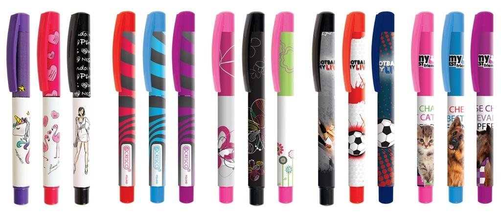 Mix wzorów, towar wysyłany losowo.Kolekcja College to klasyczne pióra wykonane z wysokiego jakościowo plastiku która obejmuje bardzo szeroką kolorystykę oraz wzornictwo.Pióro kulkowe na naboje atramentowe zasilane jest standardowymi nabojami pasującymi również do pióra wiecznego.Opakowanie... przeczytaj całość