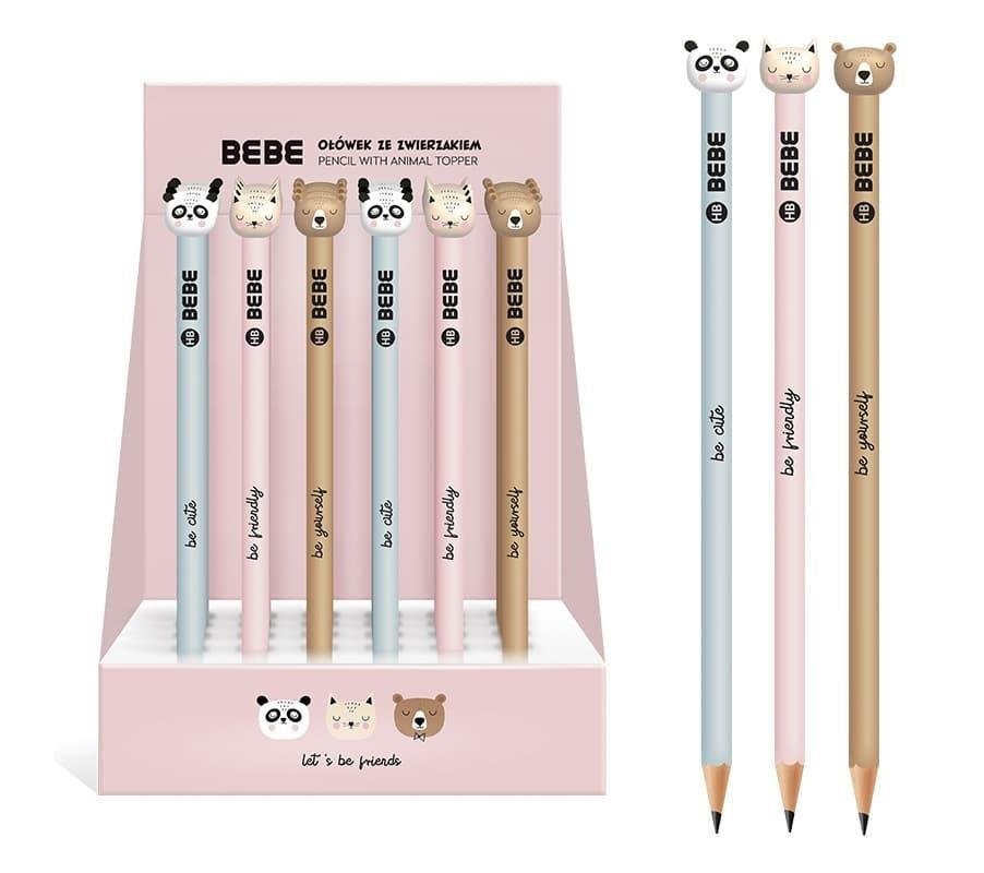 Ołówek HB. Okrągły profil i matowe wykończenie. Ołówek zakończony figurką zwierzaka z serii BB Friends. 3 wzory do wyboru. 24 szt. w displayu. przeczytaj całość