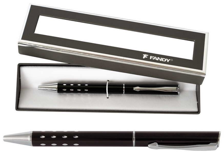 Metalowy długopis, mechanizm obrotowy, wkład wymienny F-Parker, niebieski kolor tuszu, grubość linii 0,7 mm, pudełko upominkowe. przeczytaj całość