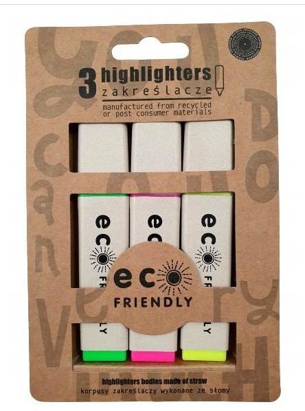 ECO zakreślacze 3 kolory; żółty, różowy, zielony, korpusy wykonane ze słomy przeczytaj całość