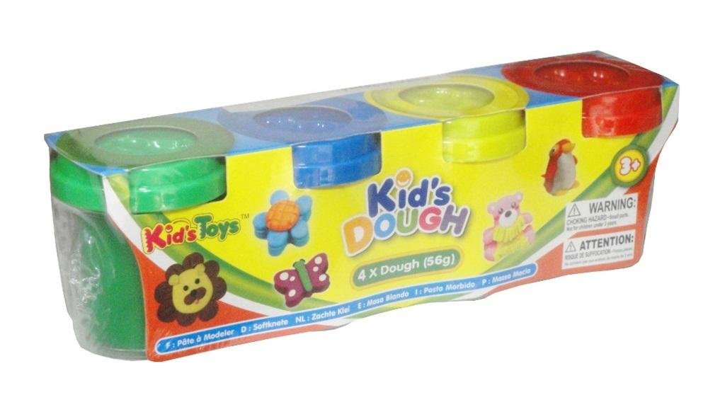 Masa plastyczna w czterech różnych kolorach.Produkt jest certyfikowany (tzn. masa/ciastolina jest przebadana i z atestem). Po zakończonej zabawie, ciastolinę należy chować do kubeczków, aby uniknąć jej wyschnięcia (a dalej kruszenia). przeczytaj całość