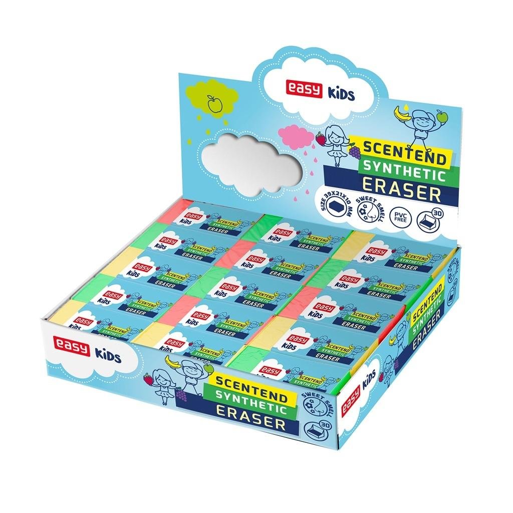 Opakowanie zbiorcze 24szt."Gumka jest niezbędnym wyposażeniem każdego, kto korzysta z ołówka grafitowego.Gumka w ciekawym kolorze i różnym zapachu . Świetnie sprawdzi się w domu i biurze.Doskonale radzi sobie z wymazywaniem linii kreślonych ołówkiem, oraz kredkami. Dzięki sporemu rozmiarowi,...