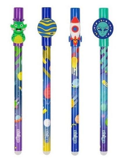 Opakowanie zbiorcze 36 sztuk.Wymazywalny długopis STRIGO ze skuwką z serii Space. Średnica końcówki piszącej 0,5 mm. W display'u 36 sztuk po 9 sztuk ze wzoru. przeczytaj całość
