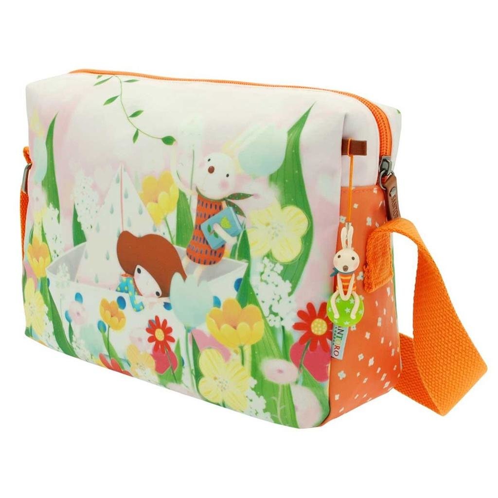 Czarująca - to za mało, żeby opisać tę torbę! Torba na ramię, posiada zewnętrzną kieszeń z suwakiem. Wykończona podszewką z wzorem. W części głównej kieszonka na telefon. Torba może być noszona na miękkim pasku, długość paska można regulować. Do torby przymocowana jest zawieszka z królikiem. Materiał zewnętrzny : bawełna, nadruk: pvc, podszewka : poliester , wykończenie : poliurentan, pasek : bawełna.