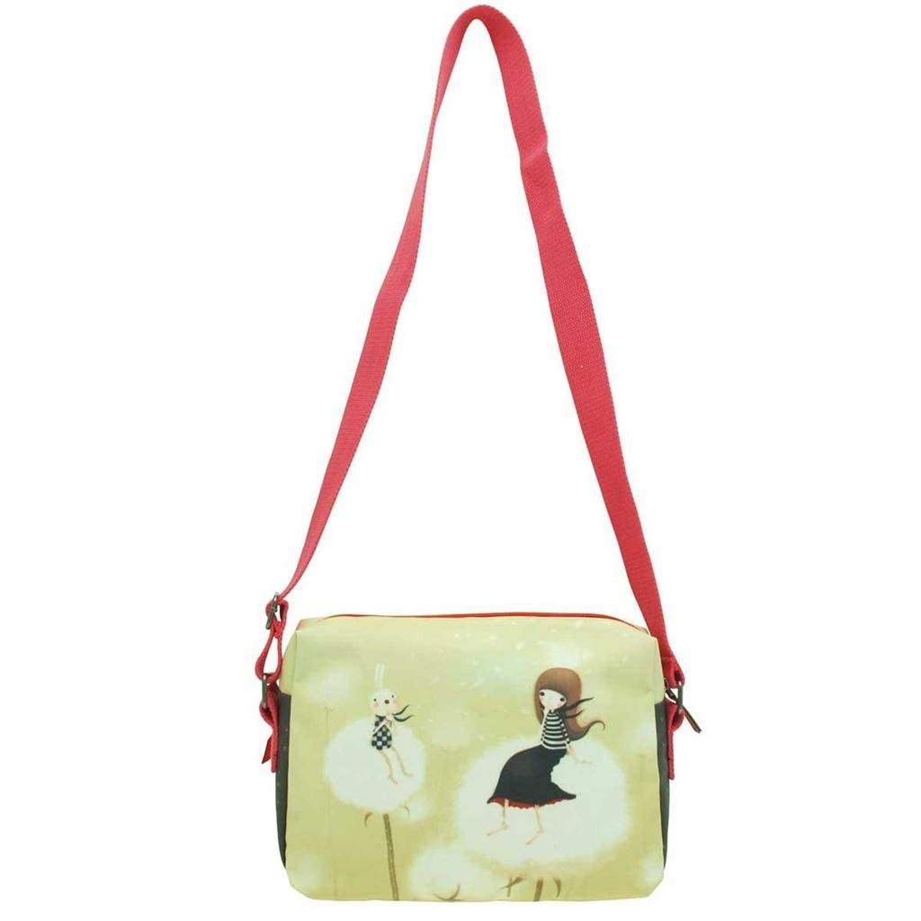 Czarująca - to za mało, żeby opisać tę torbę! Torba na ramię, posiada zewnętrzną kieszeń z suwakiem. Wykończona podszewką z wzorem. W części głównej kieszonka na telefon. Torba może być noszona na miękkim pasku, długość paska można regulować. Do torby przymocowana jest zawieszka z królikiem. Materiał zewnętrzny : bawełna, nadruk: pvc, podszewka : poliester , wykończenie : poliurentan, pasek : bawełna.