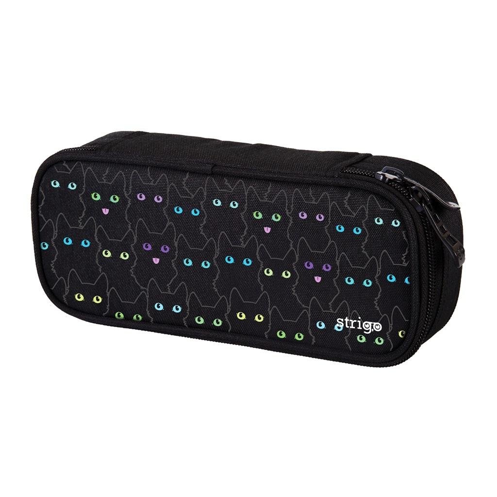 Piórnik szkolny Strigo. Wykonany z wysokiej jakości materiału, który jest odporny na zabrudzenia. Piórnik jest usztywniany i posiada dużą kieszeń wewnętrzną oraz klapka z miejscem na przybory piśmiennicze. Na górnej pokrywie znajduje się kieszonka. Piórnik posiada wysokiej jakości suwaki, które otwierane są zarówno z lewej jak i z prawej strony.