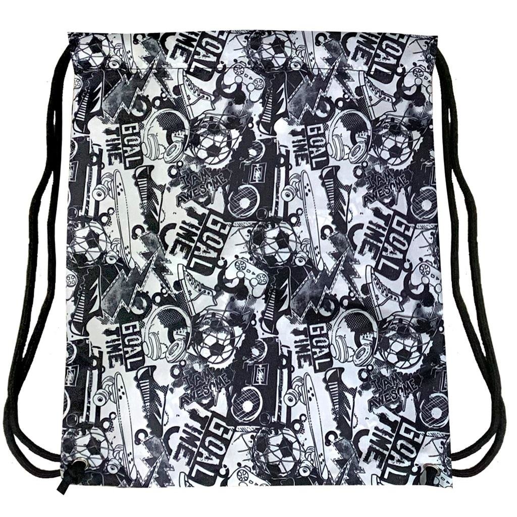 Poliestrowy worek na obuwie szkolne w kolorze czarnym z motywem piłki nożnej. przeczytaj całość