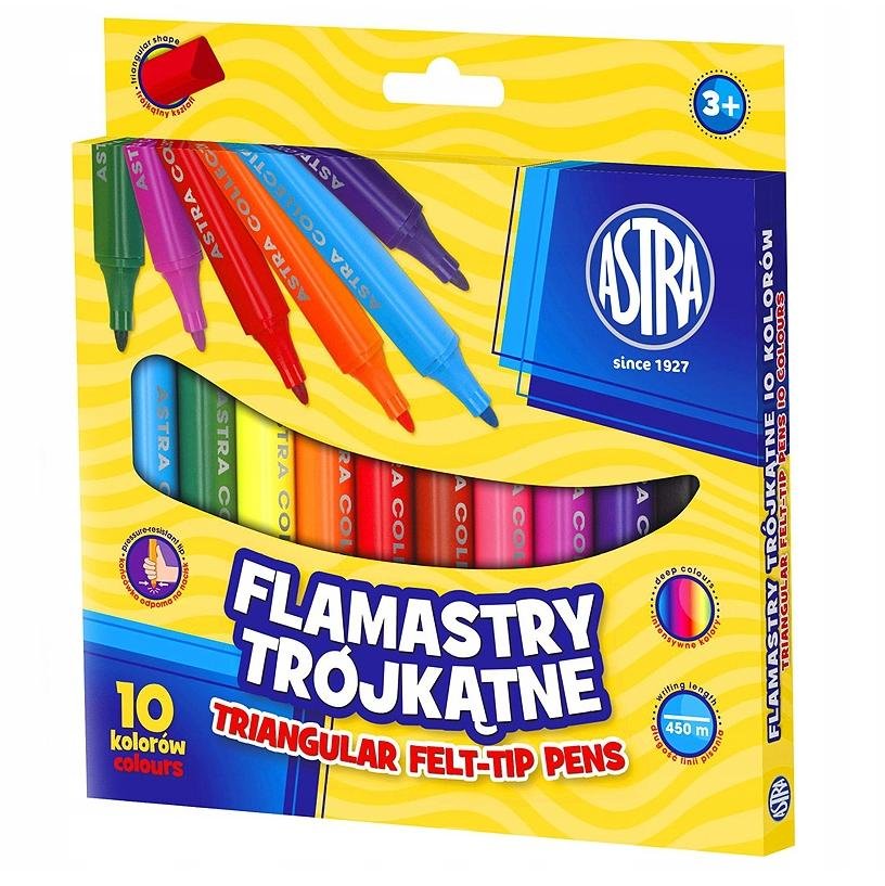 Flamastry trójkątne 10 kolorów ASTRA