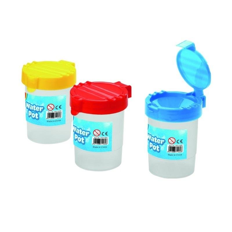 praktyczny plastikowy kubeczek na wodę, z blokadą wylania oraz pokrywą dedykowany do szkół oraz dla dzieci korzystających z farb wodnych w domu kolor: mix kolorów przeczytaj całość