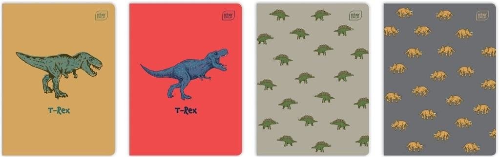 Opakowanie zbiorcze 10 sztuk.Format: A5. Liczba kartek: 32. Zadruk w kratkę. Zaokrąglone rogi. Błyszcząca okładka przyciągająca uwagę motywem dinozaurów. przeczytaj całość