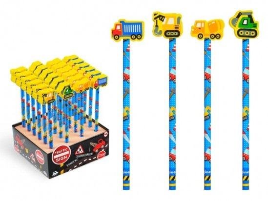 Ołówek z gumką do ścierania pojazdy budowy (24szt)